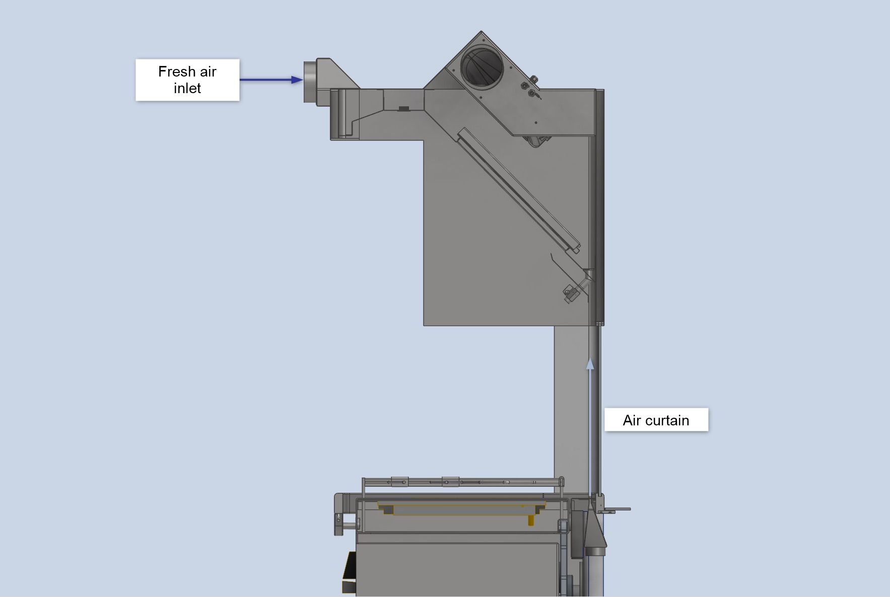 Rather than allowing the warm and humid air from the cooker to mix with the conditioned air in the rest of the galley, the team quickly decided that the best way forward was to extract the smallest amount of air as possible.
