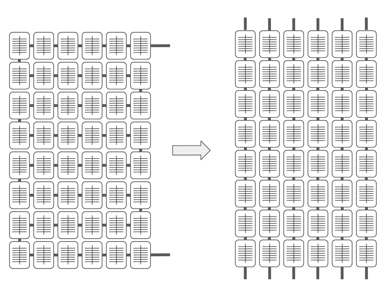 Effectively, because they’re in a series it “affects the output power of the entire funnel.” This, Irazusta explains, can result in the output power of a panel significantly decreasing even though only a small area is shaded.